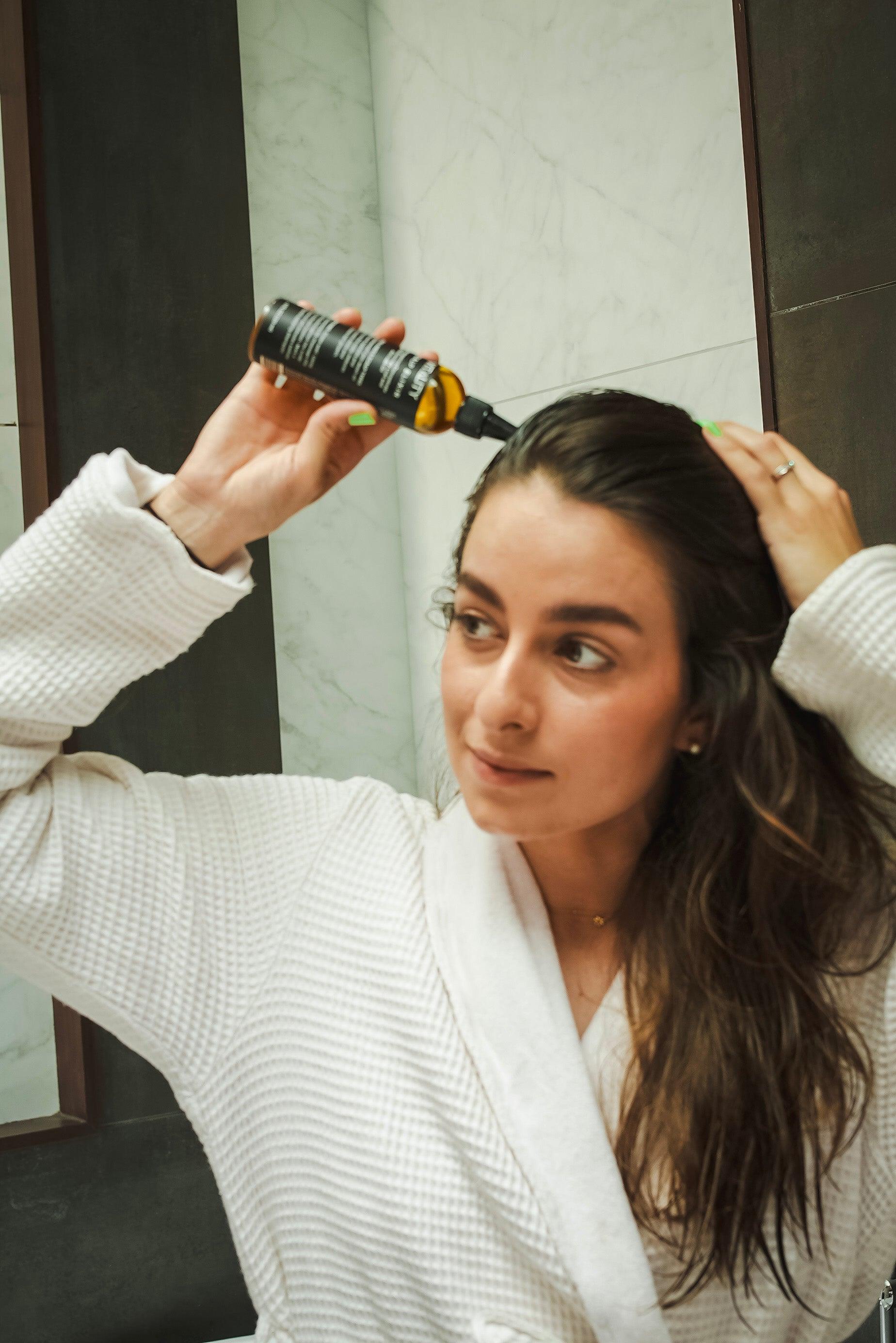 Shake well. Using the dispensing tip, massage the oil gently throughout the scalp using a circular motion. Wait a minimum of ten minutes before rinsing and applying shampoo.