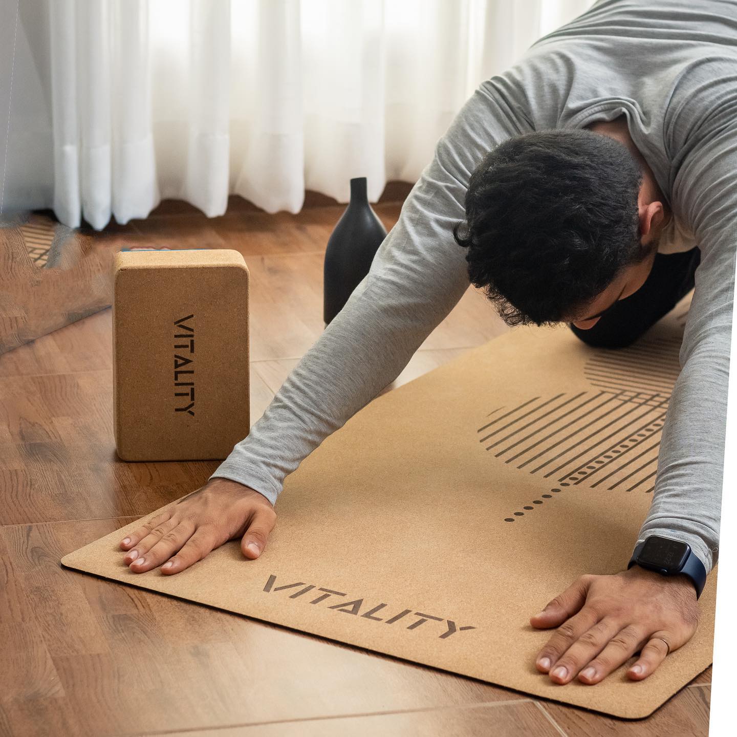 Don't fret the sweat, embrace it. The Vitality Cork Yoga mat delivers supreme traction when sweating with no slip.