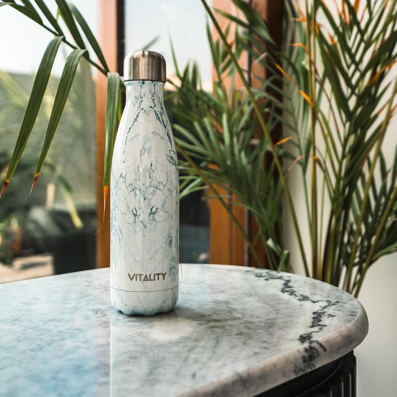 Vitality's water bottles are designed to be part of your daily carry – from work to home, or yoga to errands.
